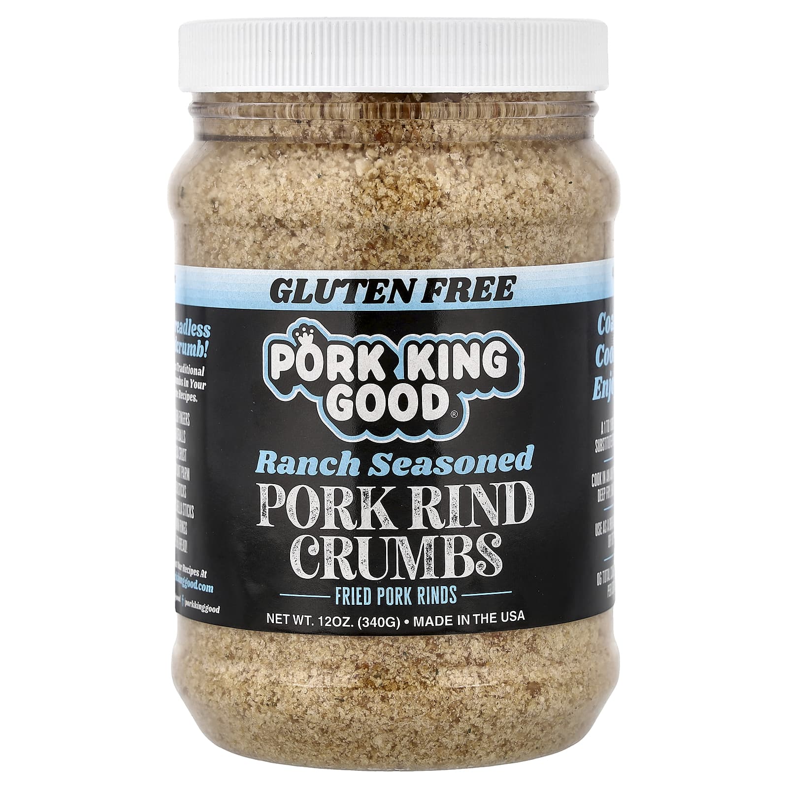 As possibilidades com baixo teor de carboidratos são infinitas com nosso substituto de pãozinho, Pork King Good™ Pork King Good™!Cada pote contém 4 xícaras de Pork Rind Crumbs, feitos inteiramente com nossas incrivelmente deliciosas cascas de porco Pork King Good™!