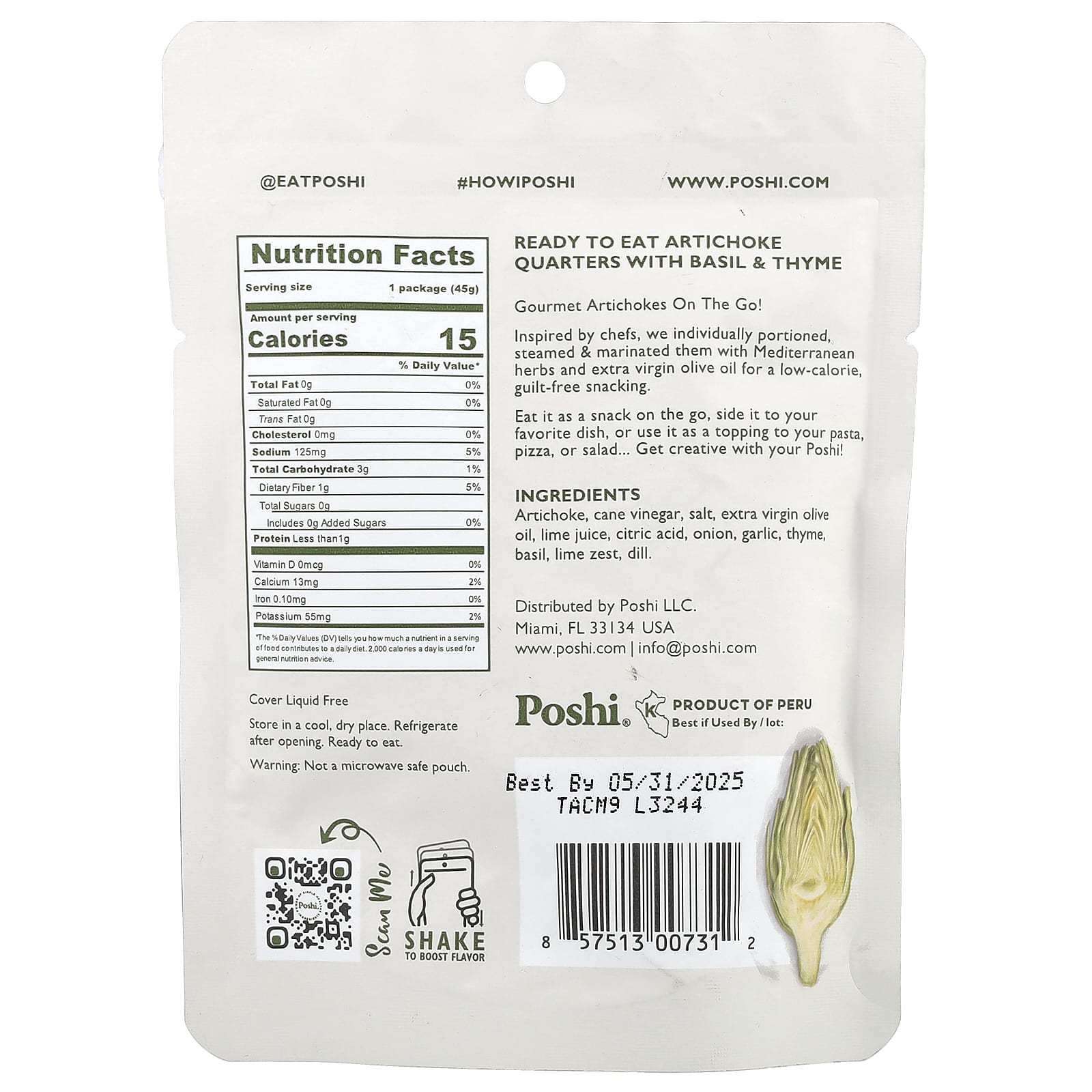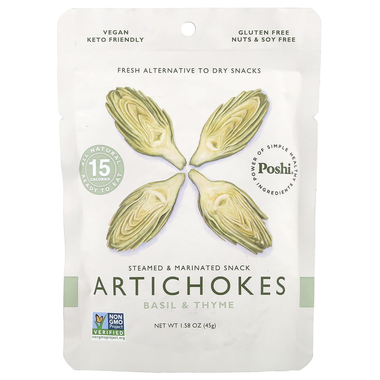 Poshi Alcachofras Manjericão e Tomilho 45 g (158 oz) – Poshi Alimentos Petiscos e lanches Snacks de frutas e vegetais Frutas e Legumes Secos.