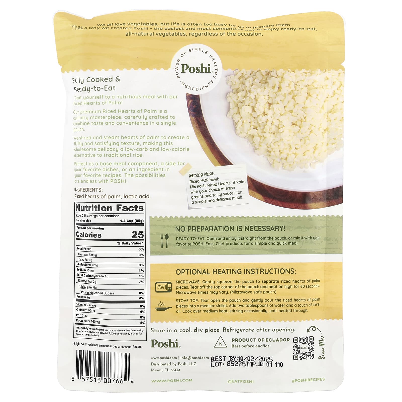 Poshi Easy Chef Corações de Palma Arrozizados no Vapor 198 g (7 oz) – Poshi Alimentos Alimentos embalados e prontos Refeições Prontas Petiscos e lanches Frutas e Legumes Secos.