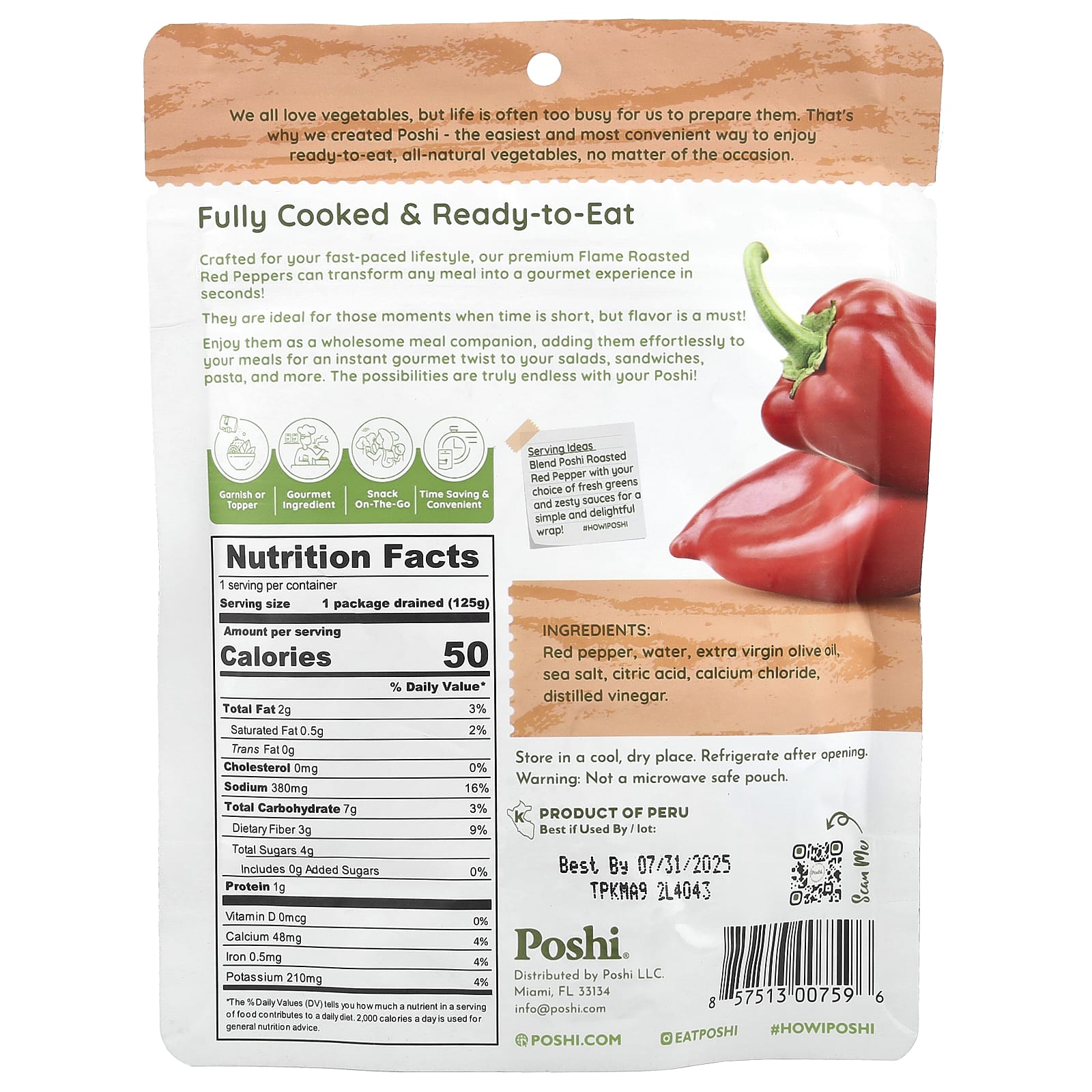 Ideias de Servidos: Misture a Pimenta Vermelha Assada Poshi com verduras frescas e molhos picantes à sua escolha para um envolvimento simples e delicioso!