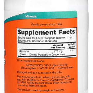 Principal Suporte: O Potássio Gluconato da Now Foods oferece um importante suporte nutricional, contribuindo para o equilíbrio de minerais essenciais no organismo.