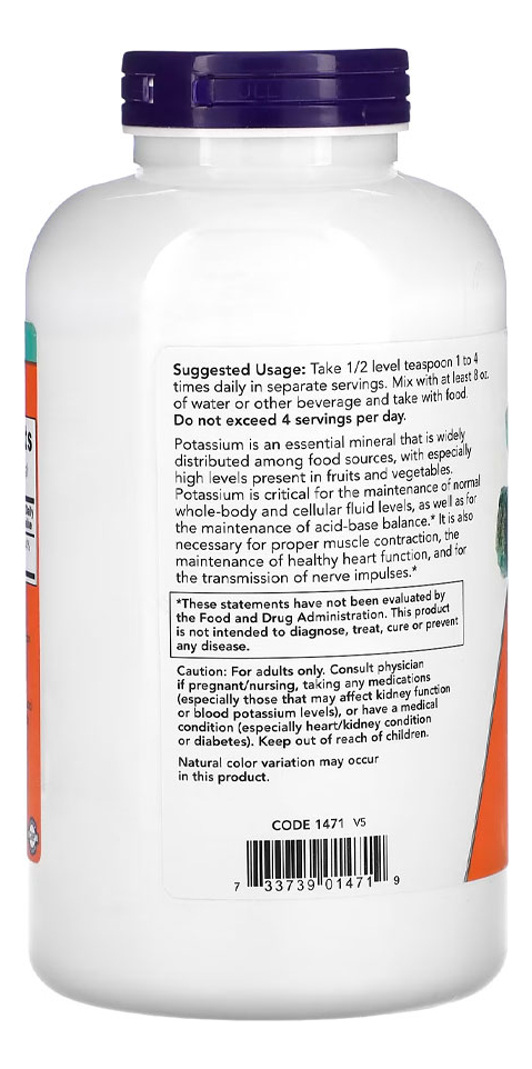 5. Composição Nutricional Eficiente: Cada porção contém uma quantidade concentrada de Potássio Gluconato, em um recipiente de 454 gramas, oferecendo uma opção de longa duração e eficaz para suprir as necessidades desse mineral. Validade longa