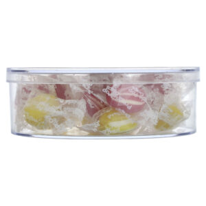 Xarope de cana seco, xarope de milho, ácido cítrico, sabores naturais (feitos com óleos essenciais de limão e framboesa), suco de beterraba, cúrcuma e vitamina B6.