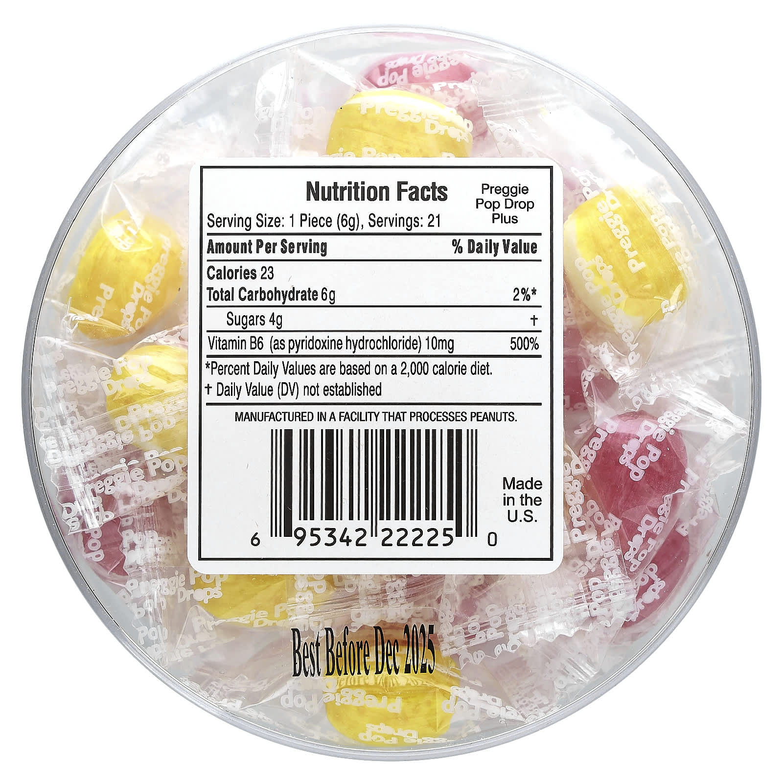 Tem enjôos matinais e necessidade de Vitamina B6? Cada porção de nosso Preggie Pop Drops Plus contém 10 mg de Vitamina B6. Nossa fórmula especial ajudará a acalmar o enjôo matinal. Desenvolvido por profissionais de saúde, entendemos o inconveniente que o enjoo matinal pode causar. Ao colocar o nosso Preggie Pop Drops Plus em sua bolsa de parto, você terá acesso imediato ao alívio dos enjoos matinais, umidificará a boca seca e fornecerá um reforço de energia sempre que precisar.