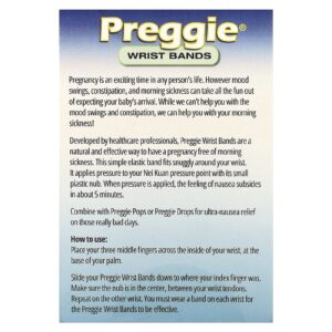 Desenvolvidas por profissionais de saúde, as Pulseiras Preggies são uma forma natural e eficaz de ter uma gravidez sem enjoos matinais. Este elástico simples se encaixa confortavelmente no seu pulso. Ele aplica pressão no ponto de pressão do Nei Kuan com a pequena saliência de plástico. Quando é aplicada pressão, a sensação de náusea diminui em cerca de 5 minutos.