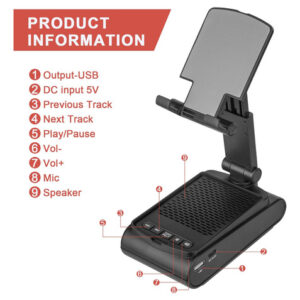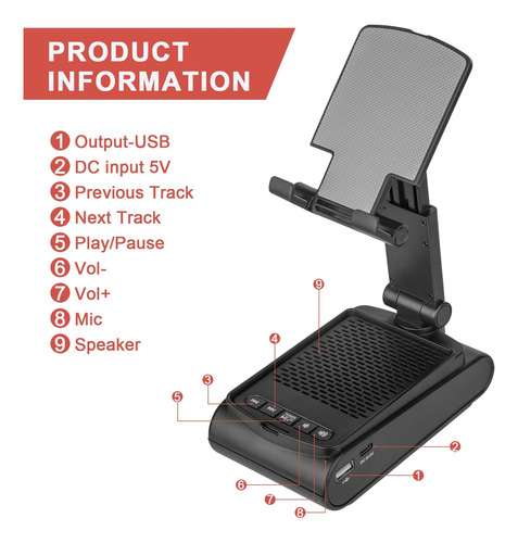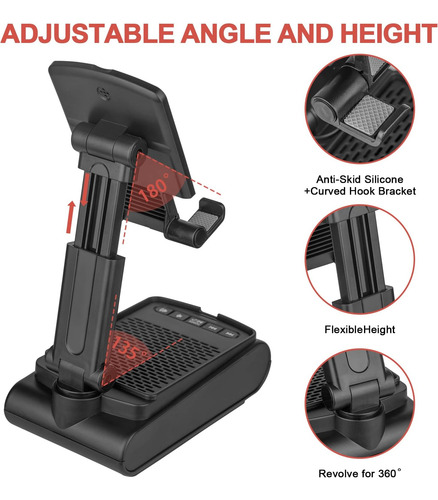 ?Design 3 EM 1?: O ALTO-FALANTE BLUETOOTH e o design do SUPORTE para TELEFONE móvel tornam-no mais conveniente para você usar. A estação de energia permite que você carregue o celular a qualquer hora e em qualquer lugar. Suporte para celular com alto-falante Bluetooth 5.0.