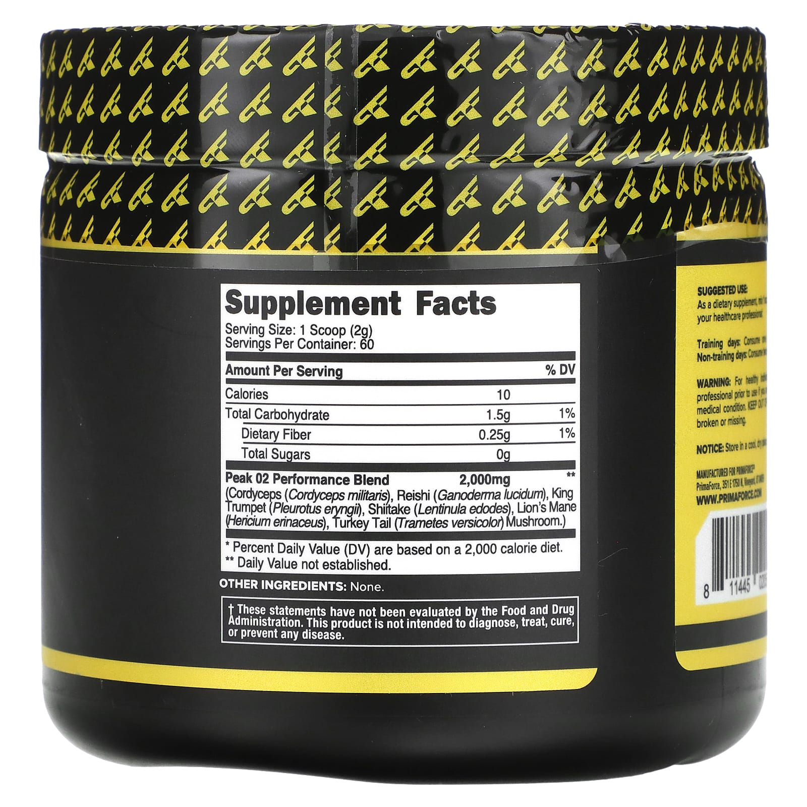 Primaforce Peak O2 Sem Sabor 120 g (42 oz) – Primaforce Suplementos Cogumelos Misturas de Cogumelos Nutrição Esportiva Suplementos Pré-treino Pré-treino estimulante.