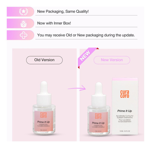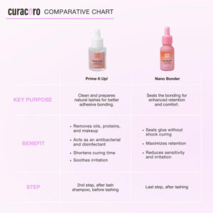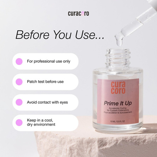 Curacoro PRIME IT UP é um produto profissional e vegano, confiado por técnicos certificados de extensão de cílios no Canadá e nos Brasil.