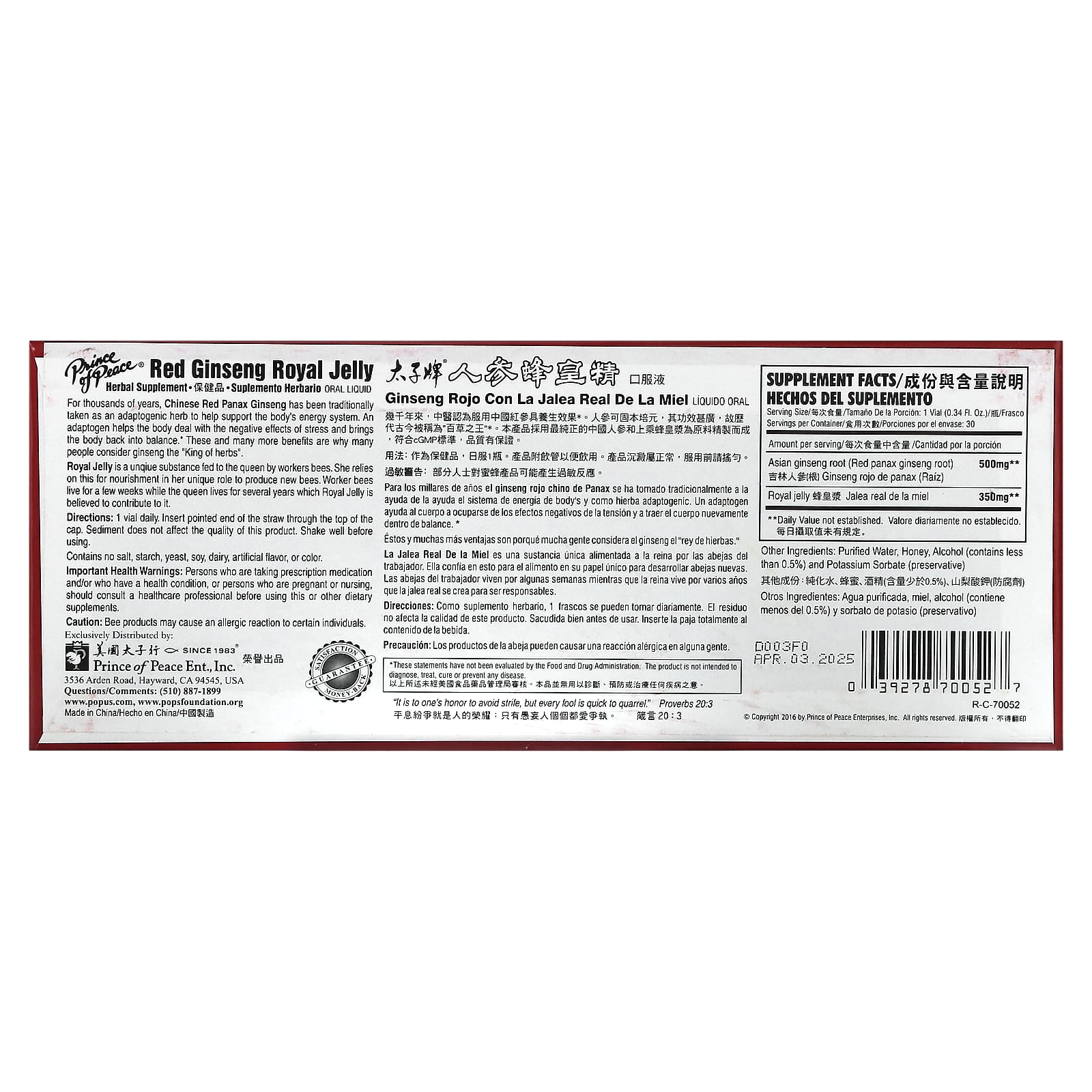 Prince of Peace Geleia Real de Ginseng Vermelho Líquido Oral 30 Frascos 034 fl oz Cada – Prince of Peace Suplementos Ervas Ginseng.