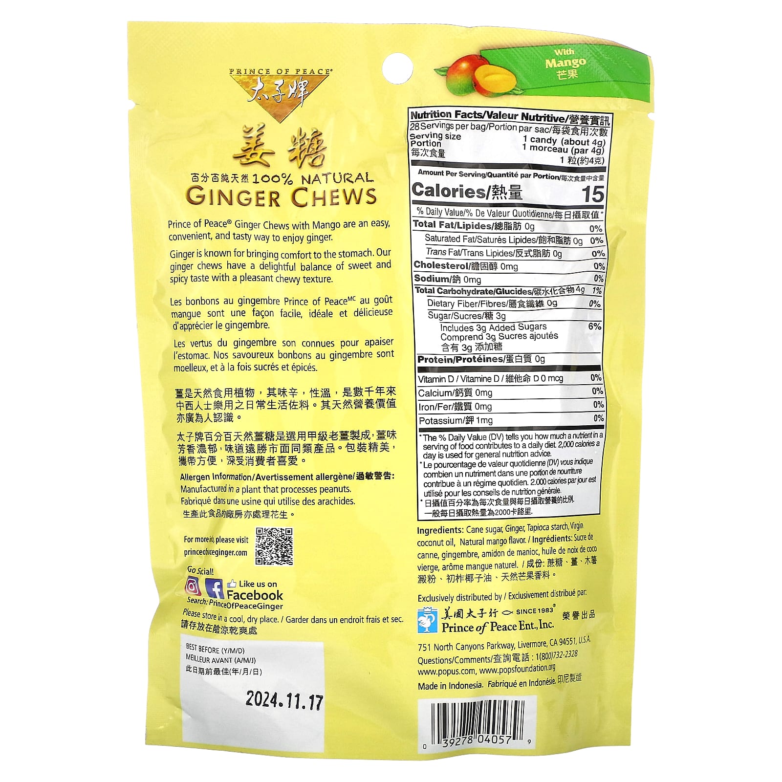 As Mastigações de Gengibre Prince of Peace® com Manga são uma maneira fácil, conveniente e saborosa de saborear o gengibre.