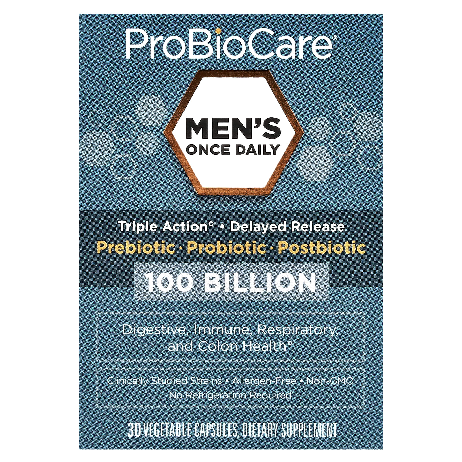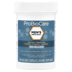 ProBioCare Mens Once Daily Prebiótico Probiótico Pós-biótico 100 Bilhões 30 Cápsulas Vegetais – ProBioCare Suplementos Saúde Intestinal Probióticos.