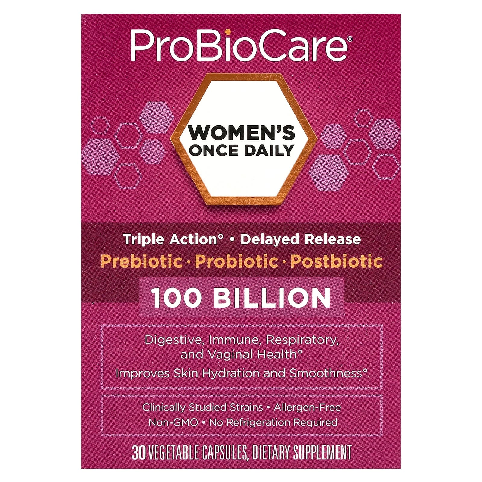 ProBioCare Probiótico Diário para Mulheres 100 Bilhões 30 Cápsulas Vegetais – ProBioCare Suplementos Saúde Intestinal Probióticos.
