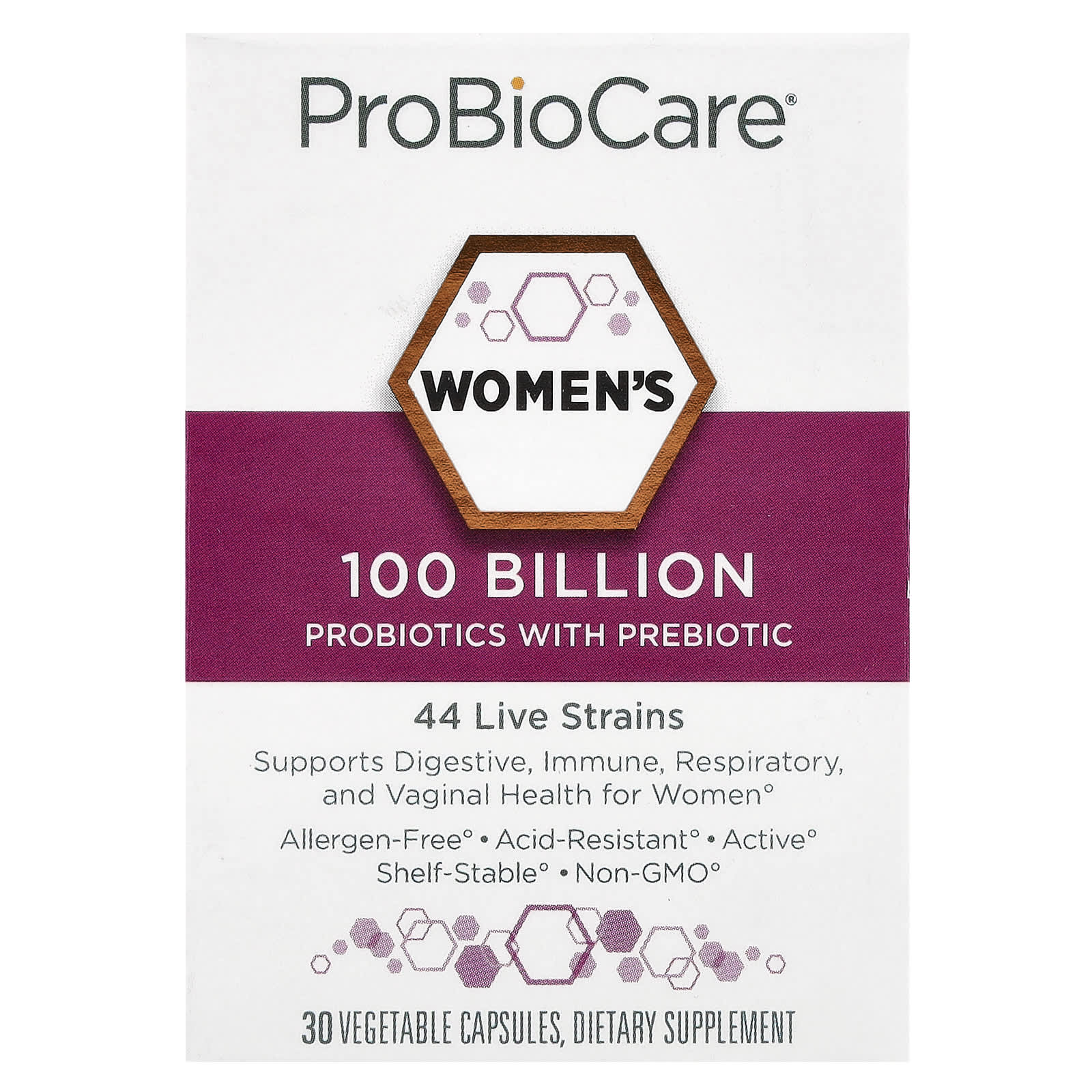 ProBioCare Probióticos para Mulheres com Prebióticos 100 Bilhões 30 Cápsulas Vegetais