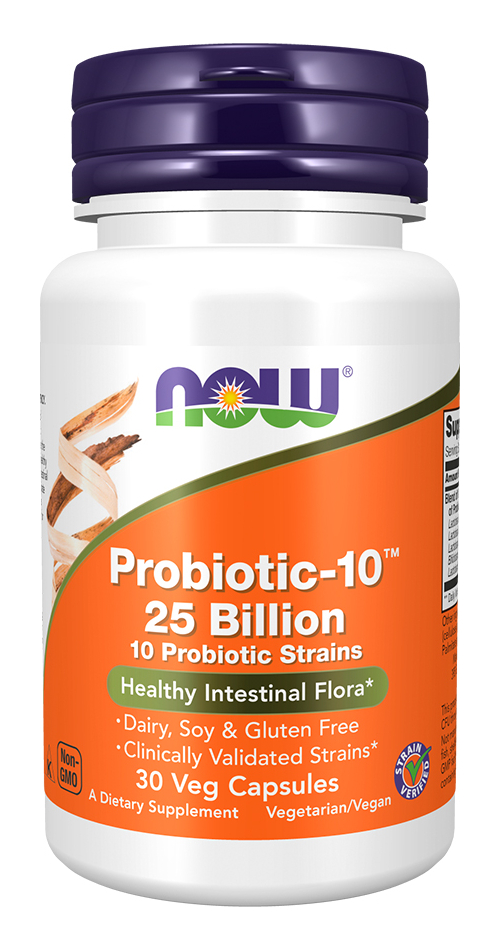 O Now Foods PROBIOTIC 10 é um suplemento probiótico de alta potência com 25 bilhões de organismos por cápsula. Cada cápsula contém uma mistura de 10 cepas probióticas diferentes, projetadas para apoiar seu bem estar digestivo e imunológico;