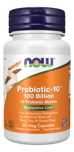 10 cepas probióticas consideradas como suplemento dietético, sem laticínios, trigo e glúten, GMP, flora intestinal saudável, fórmula vegetariana/vegana