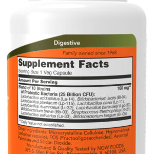 Now Foods Probiotico-10 25 Bilhões Now Foods 30 Veg Cápsulas Supporte a Flora Intestinal – Importado