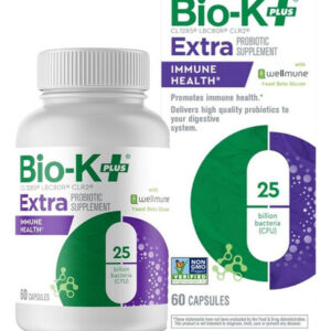 Bio-Kplus Extra Probiotics For Immune Health é um suplemento dietético desenvolvido para apoiar um sistema imunológico saudável. Esta formulação combina várias cepas de probióticos que promovem a saúde intestinal, que desempenha um papel crucial na função imune. A mistura exclusiva ajuda a manter uma microbiota intestinal equilibrada, apoiando o bem-estar geral e a resiliência contra os estressores diários e os desafios ambientais. Ideal para pessoas que buscam melhorar sua defesa imunológica naturalmente, os Probióticos Extra Bio-Kplus são um excelente complemento para um estilo de vida saudável.