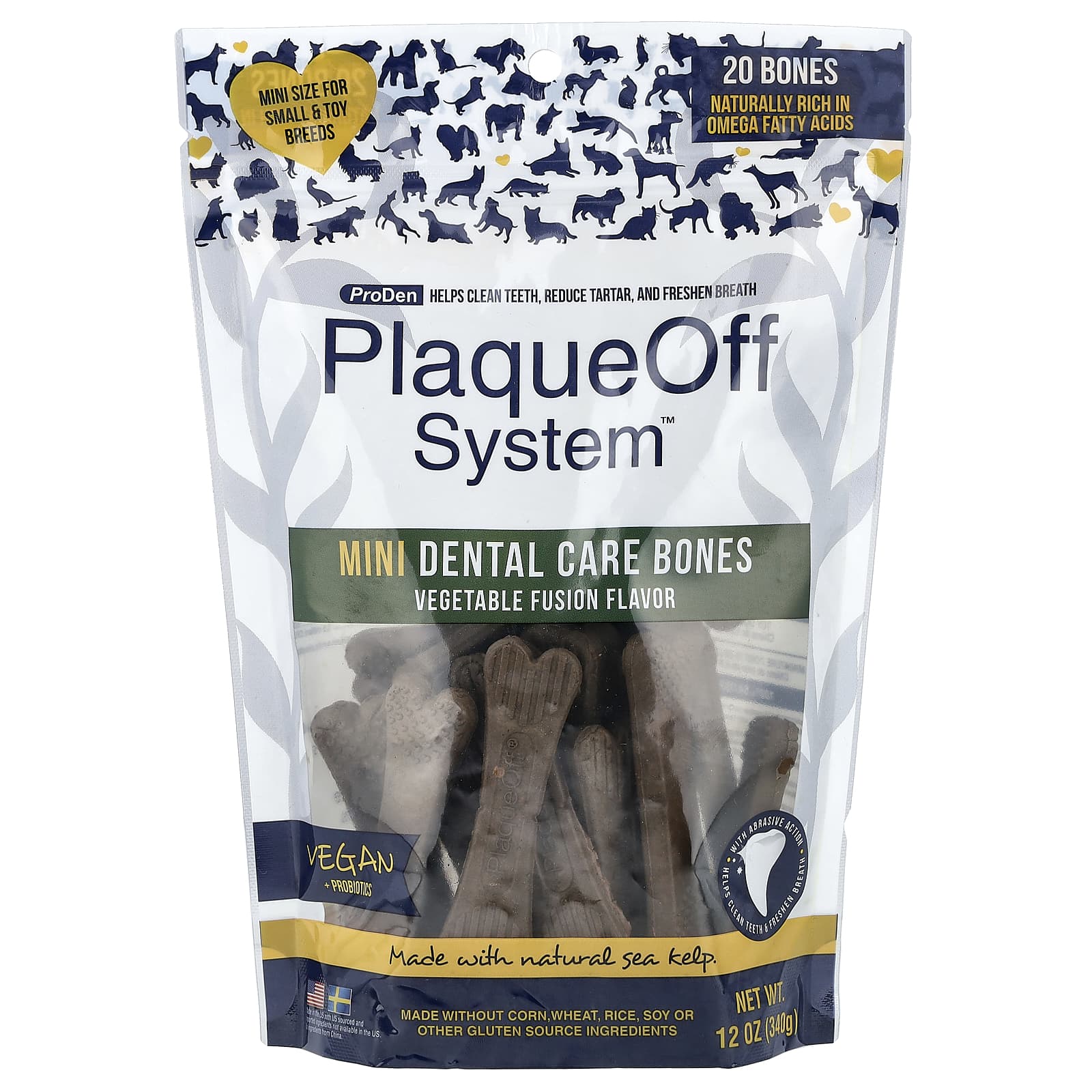 ProDen PlaqueOff System™ Mini Ossos para Higiene Dental Para Cães Pequenos e de Raça Brinqueda Fusão de Vegetais 20 Ossos 340 g (12 oz) – ProDen Pets Saúde dos pets Tratamentos e remédios para cães Cuidados bucais para cães.