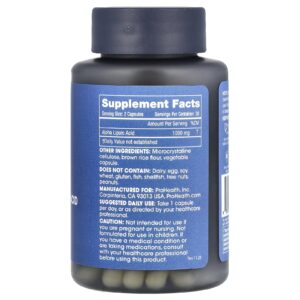 ProHealth Longevity Ácido Tióctico 60 Cápsulas (500 mg por Cápsula) – ProHealth Longevity Suplementos Antioxidantes Ácido alfa lipoico.