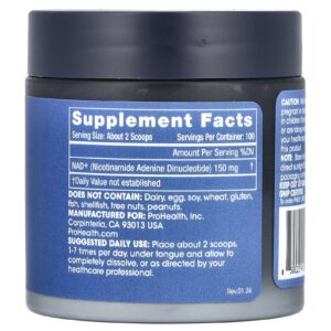 ProHealth Longevity NAD+ Pro 15 Gramas – ProHealth Longevity Suplementos Vitaminas Vitamina B Vitamina B3 (Niacina) NAD+ (Nicotinamida Adenina Dinucleotídeo).