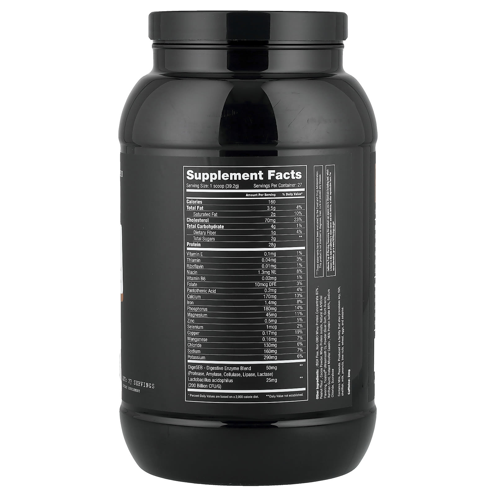Sem rBGH, Concentrado de proteína whey não OGM com 80% de farinha de amendoim , cacau em pó, isolado de whey protein, natural e sabores artificiais, ticaloid® ultrasmooth cl em pó (goma guar, goma de acácia, goma xantana), caseína micelar instantânea , isolado de proteína do leite 85%, cloreto de sódio, sucralose.