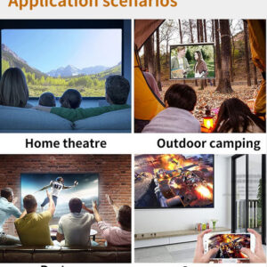 1. Mini portabilidade leve, você pode levar o mini projetor para o seu telefone a qualquer hora e em qualquer lugar. Esteja você assistindo a um filme, jogando um jogo, assistindo esportes ao vivo, acampando ao ar livre ou se reunindo com amigos.
