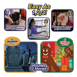 Operação simples – Instale a tela de projeção incluída com segurança dentro da janela selecionada. Aponte e congele a animação na tela, ajuste o foco da lente e comece a jogar.