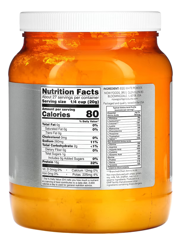 Proteína Clara Ovo Now Foods 544g Pó Sem Sabor Importado