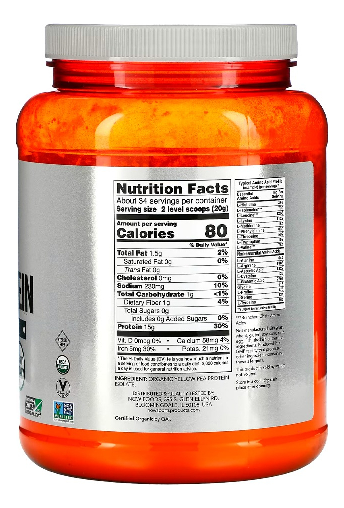 Proteína Ervilha Pó Now Foods 680g Orgânica Importado
