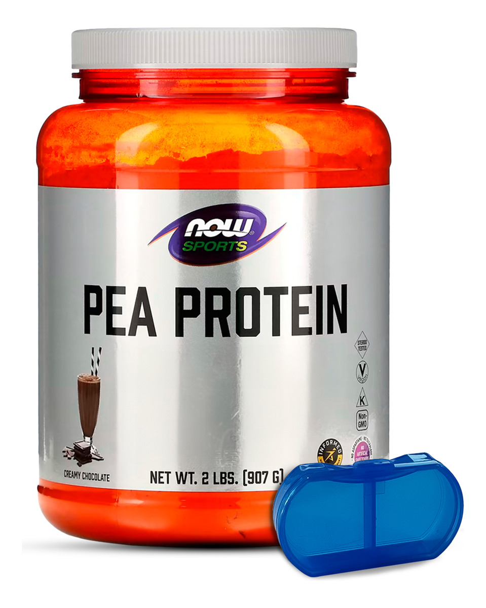 Proteína Pea Protein Now Foods 907g Chocalate Importado + Porta Cápsulas