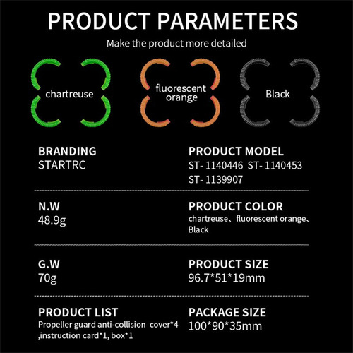 Lista de embalagem: Propeller Guard x 4 cartão de instruções x 1 caixa de cor x 1