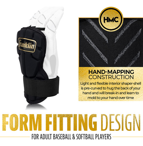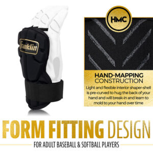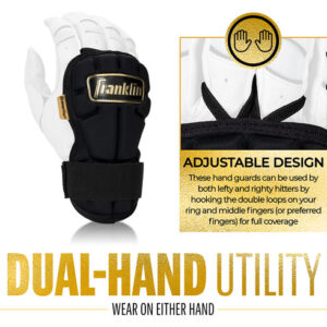 Proteja-se no prato com o protetor de pulso PRT LG Baseball Hand + da Franklin Sports! Tenha confiança e paz de espírito ao entrar na caixa da bateria com este protetor para mãos e pulsos. Com tantos ossos pequenos e frágeis na mão, arremessos acidentados podem custar caro em termos de dor e ferimentos. Esta almofada protetora de mãos e pulsos foi projetada para absorver a força do impacto e reduzir a probabilidade de ferimentos. Este protetor de mão de beisebol ajustável é fácil de colocar e foi projetado para ser elegante e confortável, para não impedir seu swing. O protetor de casca macia endurece com o impacto para diminuir os danos causados pela bola e dá aos jogadores mais confiança durante o bastão. O protetor de mãos e pulsos LG também oferece o dobro da cobertura de outros protetores de mão no mercado, estendendo-se até o pulso para proteção adicional. Projetado para ser elegante e leve, este protetor de mão foi projetado para caber confortavelmente tanto para batedores da mão direita quanto da mão esquerda. Além disso, com o tempo, o revestimento interno flexível se moldará ao formato da sua mão para um ajuste único e confortável. Então, assuma a responsabilidade com a máxima confiança e proteção para seu próximo bastão e pegue seu protetor de pulso PRT LG Baseball Hand + hoje mesmo!