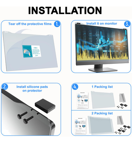 Olhar para a tela do computador por muito tempo coloca muitos de nós em risco de cansaço visual digital quando você está trabalhando dia e noite, jogando jogos ou aprendendo crianças na frente do computador. Isso pode resultar em olhos secos, visão embaçada, dores de cabeça e fadiga ocular. Nosso protetor de tela azul para computador ajuda a reduzir sua exposição à luz azul nociva e à luz UV na fonte, sem usar óculos especiais ou fazer ajustes no próprio monitor. Com essas luzes nocivas minimizadas, você pode cumprir prazos apertados ou desfrutar de sessões de jogo prolongadas sem sacrificar sua visão. Nosso protetor de tela de luz azul de computador de última geração bloqueia até 99% da luz UV de atingir seus olhos e > 90% da luz azul na faixa de 420nm-460nm. Isso ajuda a preservar as células sensíveis à luz da retina, onde as doenças oculares, como a degeneração macular, começam. Ao proteger seus olhos agora, você está investindo na saúde da visão a longo prazo e na sua capacidade de levar uma vida plena e gratificante. – ANTES DE PEDIR1. Meça o tamanho diagonal do monitor sem bordas. 2. Verifique a tabela de tamanhos para confirmar a variação correta de que você precisa.3. A largura e a altura do protetor de tela de bloqueio de luz azul do computador de 27 polegadas são largura 612,6 mm* altura 356 mm. (NÃO É PARA TELA IMAC) Compatível com monitores curvos – ANTI-RAIOS AZUIS/UV/radiação O protetor de tela de bloqueio de luz azul do computador adotou a tecnologia japonesa de empilhamento nano-óptico Fujimori, bloqueando efetivamente a luz azul em 90%, anti-UV 98% e bloqueia outras luzes nocivas em 99%. Recomendado por oftalmologistas: filtro de tela de computador para fadiga ocular – Protetor de tela de computador de mesa de qualidade PREMIUM para proteção ocular com materiais acrílicos reforçados 8H, 5 camadas de proteção de engenharia óptica com visão de alta resolução, cores reais, resistência a arranhões, anti-impressão digital, ultrafino de 2 mm, à prova de explosão – Aplicação. Fácil de usar com o tipo suspenso, bloqueador de luz azul de tela de computador adequado para trabalhar, aprender, jogar, assistir TV e assim por diante. Reduzindo o cansaço visual, prevenindo miopia e ressecamento, hiperemia e assim por diante, concentrando-se no que você faz, melhorando efetivamente o trabalho e o aprendizado dos filhos – SERVIÇO PROFISSIONALRemova as películas protetoras do computador dos dois lados antes de instalar o filtro de luz azul no monitor do computador. Entre em contato conosco se algum problema o incomodar, resposta e solução que você obteve na primeira vez