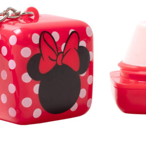 Bálsamo labial com sabor Lip Smacker Disney Minnie Mouse Cube, algodão doce Minnie Joyful, transparente, para crianças — Sabores inspirados na Disney — Protetor labial em forma de cubo — Possui um chaveiro — Bálsamo colecionável