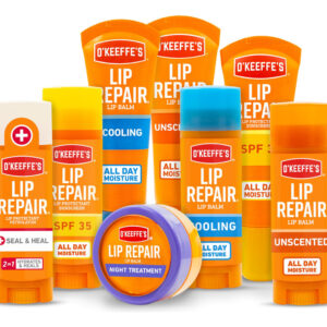 Bálsamo labial O'Keeffe's Lip Repair para lábios secos e rachados, em bastão (pacote com 3:1 refrescante + 1 sem perfume + 1 SPF) — O reparador labial OKeeffes é um cuidado de pele árduo que fornece alívio instantâneo aos lábios extremamente secos e rachados – Cura, alivia e repara lábios extremamente secos e rachados – Cria uma barreira flexível de várias camadas que se move com os lábios para ajudar a mantê-los secos, lábios inchados protegidos — Absorve rapidamente para fornecer lábios macios e macios — Mantém os lábios hidratados por 8 horas — Este pacote de 3 contém (1) bastão sem perfume, (1) bastão refrescante e (1) bastão SPF 35