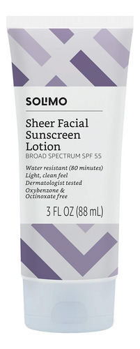 Protetor solar facial transparente Amazon Basics SPF 55, proteção UVA/UVB, sem perfume, leve, resistente à água, formulado sem octinoxato e oxibenzona, 3 fl oz (pacote com 1) (anteriormente Solimo) — proteção SPF de amplo espectro; resistente à água por até 80 minutos; feito para uma sensação leve e limpa; testado dermatologicamente; formulado sem octinoxato e oxibenzona; um Amazon Marca