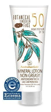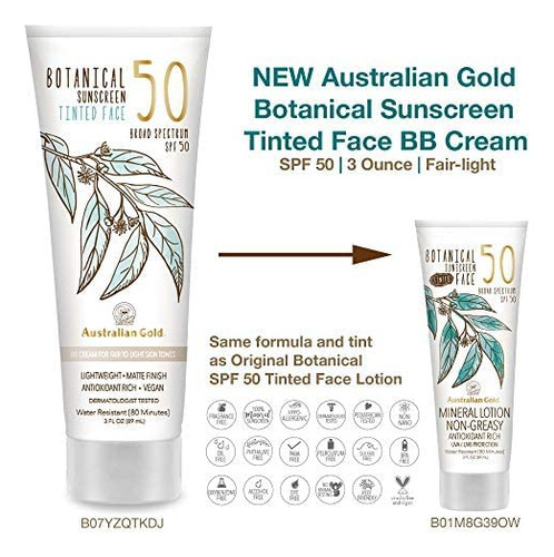 Loção mineral facial colorida com protetor solar Australian Gold Botanical SPF 50, 3 onças | Amplo espectro | Resistente à água —