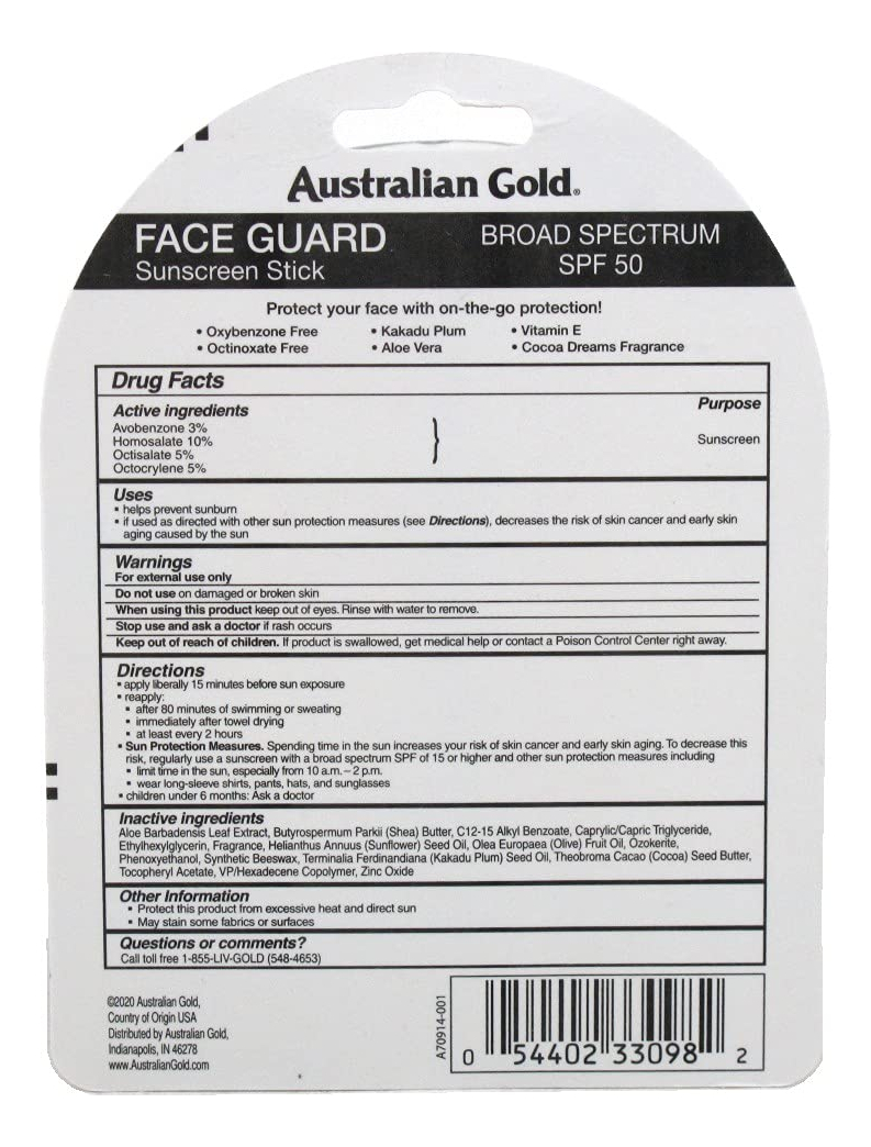 Protetor facial Australian Gold SPF 50+, 0,5 onça (pacote com 2) – Hidratante: manteiga de karité, óleo de semente de girassol, óleo de jojoba e óleo de romã hidratam profundamente para uma pele macia e hidratada – Adequado para toda a família: permanece transparente e é feito pensando na pele sensível – Multiuso: pode ser usado no rosto, lábios e nariz, bem como em tatuagens para evitar o desbotamento – Fragrância: tire férias instantâneas com a fragrância exclusiva Cocoa Dreams, combinada de coco, laranja e baunilha