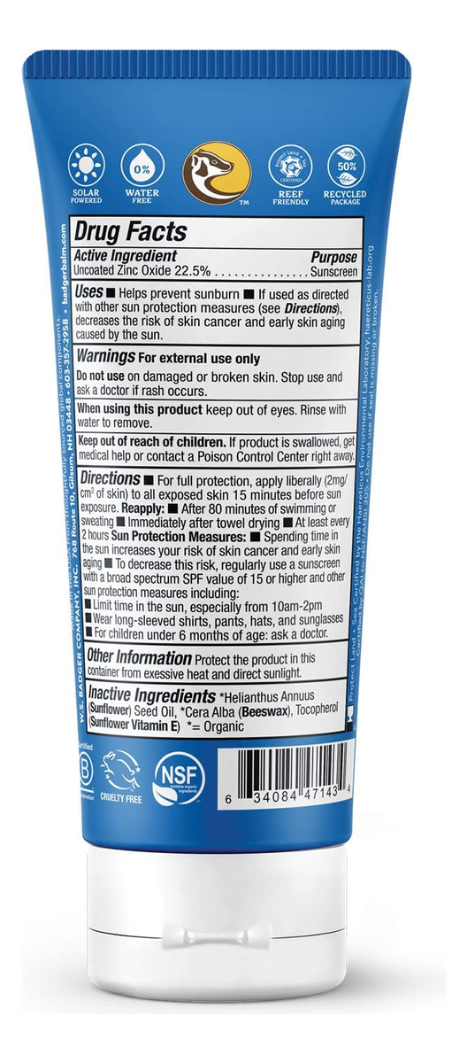 Experimente uma proteção solar superior com o protetor solar seguro Badger Reef e o protetor solar mineral esportivo SPF sem perfume. Este protetor solar excepcional foi criado para atender às necessidades de entusiastas de atividades ao ar livre e de pessoas ecologicamente corretas, fornecendo uma proteção segura e eficaz contra os fortes raios do sol. Se você estiver no tranquilo Havaí ou no aventureiro México, nosso protetor solar para viagens cabe perfeitamente na sua bolsa, pronto para acompanhá-lo em sua viagem. Com 98% de ingredientes orgânicos, essa loção à base de minerais oferece uma defesa natural que respeita a pele e o meio ambiente. Feito com óxido de zinco (óxido de zinco), ele garante um impacto mínimo na vida marinha, ao mesmo tempo em que oferece a máxima proteção solar. Reconhecido por suas propriedades resistentes à água, o protetor solar mineral Badger Sport foi projetado para acompanhar seu estilo de vida ativo. Oferecendo 80 minutos de cobertura à prova d'água, é ideal para esportistas e esportistas que praticam atividades radicais na praia, como surfe ou vôlei de praia. Sua formulação exclusiva não apenas atua como uma barreira eficaz, mas também nutre a pele como nenhuma outra loção protetora solar. Rico em ingredientes hidratantes, esse protetor solar biodegradável funciona como um hidratante que mantém a pele hidratada após horas sob o sol escaldante. Esta fórmula de protetor solar é suave o suficiente para quem tem tatuagens ou pele sensível, fornecendo um creme calmante sem fragrâncias irritantes. Como um protetor solar sem perfume testado de acordo com os padrões éticos, o Badger garante que é livre de crueldade e seguro para todas as idades. Este protetor solar à base de minerais se destaca como uma das melhores opções no mercado atual para proteger seu corpo para que você possa aproveitar cada momento sob o sol. Escolha o protetor solar de óxido de zinco seguro Badger Reef e invista em protetores solares corporais premium que protegem as pessoas e a natureza. Lista completa de ingredientes: óxido de zinco transparente não revestido, óleo de girassol orgânico, cera de abelha orgânica, vitamina E de girassol (98% orgânica e certificada como não transgênica) – Proteção solar mineral segura e eficaz: protetor solar totalmente natural com óxido de zinco protege contra queimaduras solares e danos à pele. Protetor solar mineral com amplo espectro de proteção UVA UVB para peles sensíveis – 98% INGREDIENTES ORGÂNICOS: apenas 4 ingredientes simples para proteger e nutrir; óxido de zinco mineral, óleo de girassol orgânico, cera de abelha orgânica e vitamina E. Sem perfume, hipoalergênico e sem produtos químicos – FÁCIL DE APLICAR E RESISTENTE À ÁGUA: protetor solar leve à base de girassol, fácil de aplicar para esfregar o corpo e o rosto de forma transparente. 80 minutos resistente ao suor e à água é perfeito para viagens, praia e surfe – PROTETOR SOLAR ADEQUADO PARA RECIFES/SEGURO PARA RECIFES: protetor solar sem oxibenzona ou qualquer produto químico que prejudique os recifes de coral. Protetor solar aprovado pelo México e Havaí. Seguro para recifes significa seguro para você – CUIDADO SOLAR SUSTENTÁVEL: protetor solar mineral para rosto e corpo que é 98% orgânico, livre de crueldade, livre de transgênicos, sem glúten, em 50% de tubos de PCR e feito com 100% de energia solar nos EUA por uma empresa familiar de propriedade de mulheres
