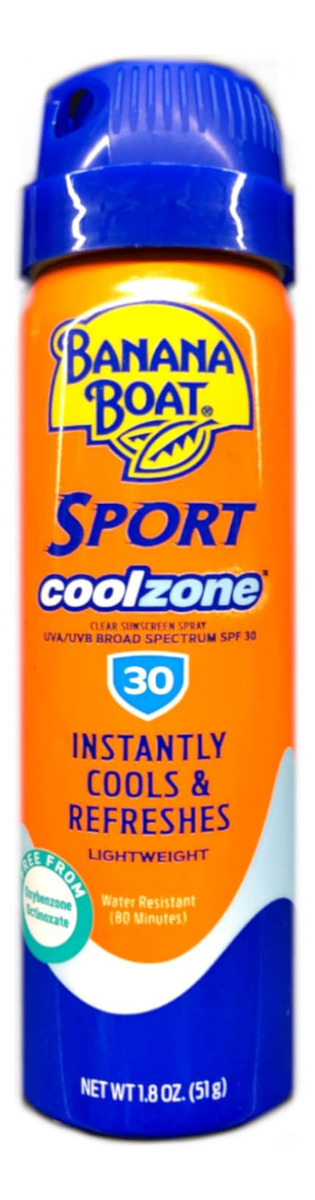 Banana Boat Continuous Spf #30 Sport Cool Zone de 1,8 onças (6 peças) (53 ml) – 6 peças – 1,8 onças (53 ml) – Resistente à água por até 80 minutos – Esfria e refresca instantaneamente – Aroma refrescante e limpo – Proteção UVA/UVB