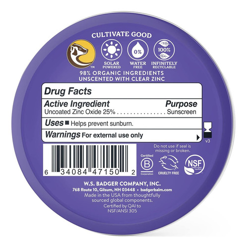 AMERICAN CREW GROUP, com sede no Brasil, dedicado à venda de produtos por meio de serviço porta a porta em todo o mundo. ANTES DE FAZER UMA CONSULTA, VEJA TODAS AS IMAGENS DO PRODUTO – OS PRODUTOS SERÃO ENVIADOS DOS Brasil ATÉ A PORTA DE SUA CASA, DENTRO DE 3 DIAS ÚTEIS A PARTIR DA DATA DA COMPRA. – TUDO É POR NOSSA CONTA, VOCÊ NÃO DEVE FAZER NENHUM PROCEDIMENTO ALFANDEGÁRIO OU PAGAR NADA ALÉM DO QUE VOCÊ PAGOU NO MOMENTO DA COMPRA. – TODOS OS NOSSOS PRODUTOS SÃO NOVOS, IMPORTADO, ORIGINAL E FÍSICO. – ENVIAMOS SOMENTE POR MERCADOENVIOS – FORMA DE PAGAMENTO: MERCADOPAGO – FAZEMOS UMA FATURA INTERNACIONAL – GARANTIA DE 30 DIAS CORRIDOS APÓS O RECEBIMENTO DA COMPRA. – TEMOS ESTOQUE DE TODOS OS PRODUTOS LISTADOS EM NOSSA LOJA – PUBLICAÇÕES SOB SOLICITAÇÃO – AMERICAN CREW GROUP 100% COMPROMETIDO COM O ATENDIMENTO AO CLIENTE Se você quiser saber mais sobre um produto que não viu publicado, aguardamos sua consulta. Obrigado por nos escolher! descrição longa PROTETOR SOLAR DE PROTEÇÃO MÁXIMA: O protetor solar mineral de óxido de zinco seguro protege contra queimaduras solares e danos à pele. Protetor solar totalmente natural com proteção UVUVB de amplo espectro para peles sensíveis. 98% INGREDIENTES ORGÂNICOS: Apenas 4 ingredientes simples para proteger e nutrir o óxido de zinco mineral, óleo de girassol orgânico, cera de abelha orgânica e vitamina E. Sem perfume, hipoalergênico e sem produtos químicos. FÁCIL DE USAR E RESISTENTE À ÁGUA: protetor solar leve à base de girassol, fácil de aplicar no rosto e no corpo, em cor transparente. O protetor solar à prova dágua de 80 minutos é perfeito para praia, surfe e esportes aquáticos. PROTEÇÃO SOLAR SEGURA PARA RECIFES TAMANHO DE VIAGEM: Livre de oxibenzona e de quaisquer produtos químicos que danifiquem os recifes de coral. Protetor solar para viagens ao México e Havaí. Protetor solar biodegradável prático em uma lata para sua bolsa PROTETOR SOLAR SUSTENTÁVEL SEM PLÁSTICO: 98% orgânico, livre de crueldade, sem OGM e sem glúten em um tubo de PCR de 50% e feito com energia solar nos Brasil. Departamento de Estado por uma empresa familiar feminina. Cor: Marca: Badger Dimensões: 0,024 x 0,066 x 0,066 metros Peso do produto: 0,1 kg. Peso de envio: 0,1 kg. Modelo: 634084471502 Ref: B09GL7G9C7