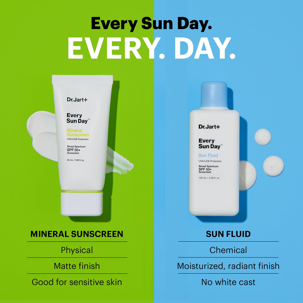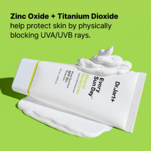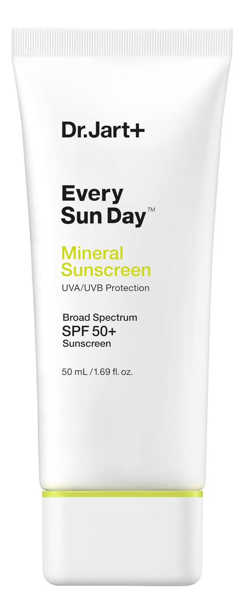 Protetor solar mineral Dr.Jart+ Every Sun Day SPF 50+ para rosto | Cuidados com a pele coreanos, 1,69 fl oz – O que há nele: o protetor solar mineral (óxido de zinco e dióxido de titânio) protege a pele dos danos causados pelo sol, fornecendo uma barreira protetora para refletir e dispersar os raios UVA e UVB da pele. – Um protetor solar físico com acabamento fosco, leve e bom para todos os tipos de pele, incluindo peles sensíveis. – Mineral. – Um protetor solar físico com acabamento fosco que não pesa e é bom para todos os tipos de pele, incluindo peles sensíveis. – Mineral. – Protetor solar físico com acabamento fosco que não pesa e é bom para todos os tipos de pele, incluindo peles sensíveis. – Mineral. – Protetor solar físico com acabamento fosco e leve os protetores solares tendem a ser mais espessos e mais adequados para peles sensíveis.