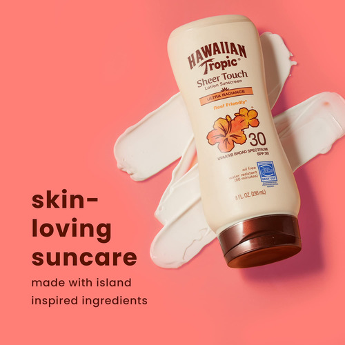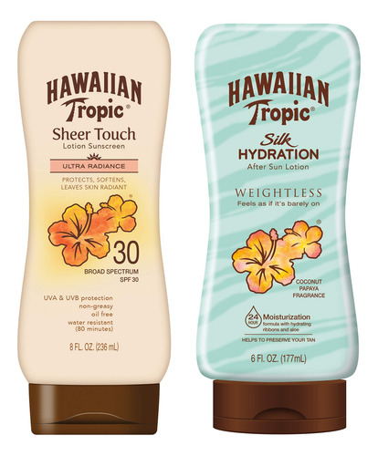 Protetor solar Hawaiian Tropic SPF 30 de amplo espectro e pacote pós-sol com protetor solar hidratante Sheer Touch de 8 onças e loção pós-sol leve de hidratação de seda de 6 onças