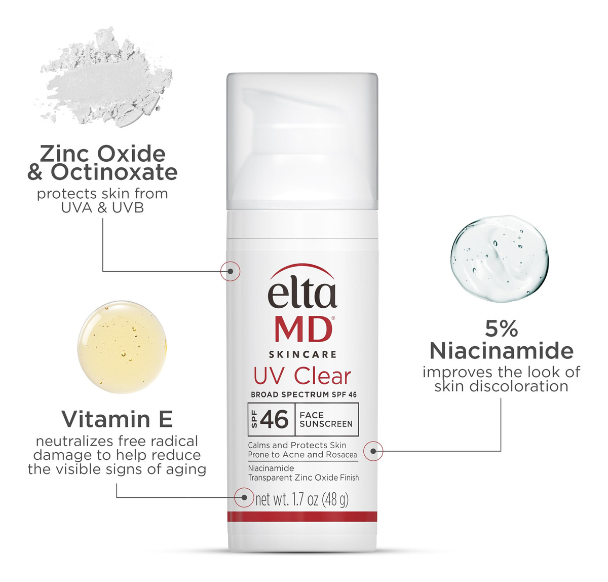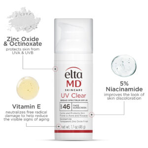 Protetor solar facial UV Clear EltaMD SPF 46, protetor solar sem óleo com óxido de zinco, protetor solar recomendado por dermatologistas, 0,5 onças – O protetor solar facial UV Clear Face EltaMD é um protetor solar leve sem óleo feito com óxido de zinco transparente que não deixa manchas brancas após a aplicação e ajuda a bloquear os raios solares UVA e UVB prejudiciais – O protetor solar facial recomendado por dermatologistas para peles propensas a acne é isento de óleo, protege contra erupções cutâneas e é um protetor solar essencial para acne para pessoas com problemas de cuidados com a pele propensa a acne e outros tipos de pele sensíveis, como rosácea e hiperpigmentação – Este protetor solar facial para peles sensíveis contém óxido de zinco, niacinamida, ácido hialurônico e um antioxidante para promover a aparência de uma pele com aparência saudável e reduzir o ressecamento e a vermelhidão da pele