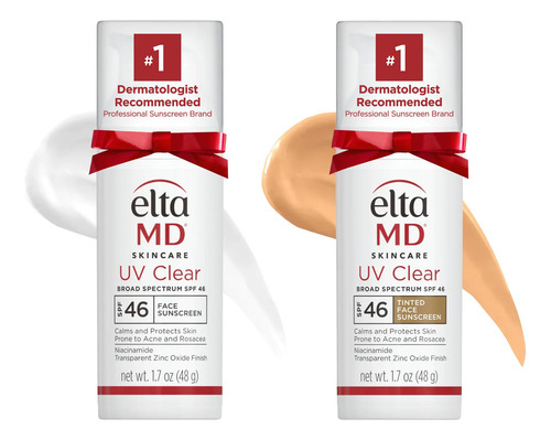 Kit Duo EltaMD UV Clear, UV Clear Tinted, protetor solar facial SPF, proteção de amplo espectro colorido e não colorido para peles sensíveis