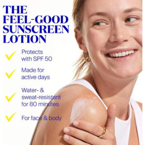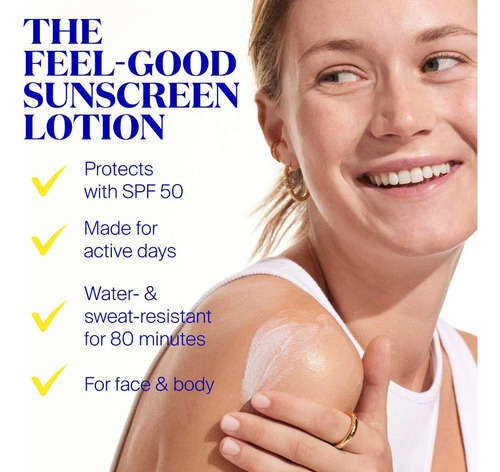 O que é: Uma loção protetora solar para rosto e corpo de rápida absorção e não oleosa que hidrata a pele e é resistente à água e ao suor por 80 minutos.