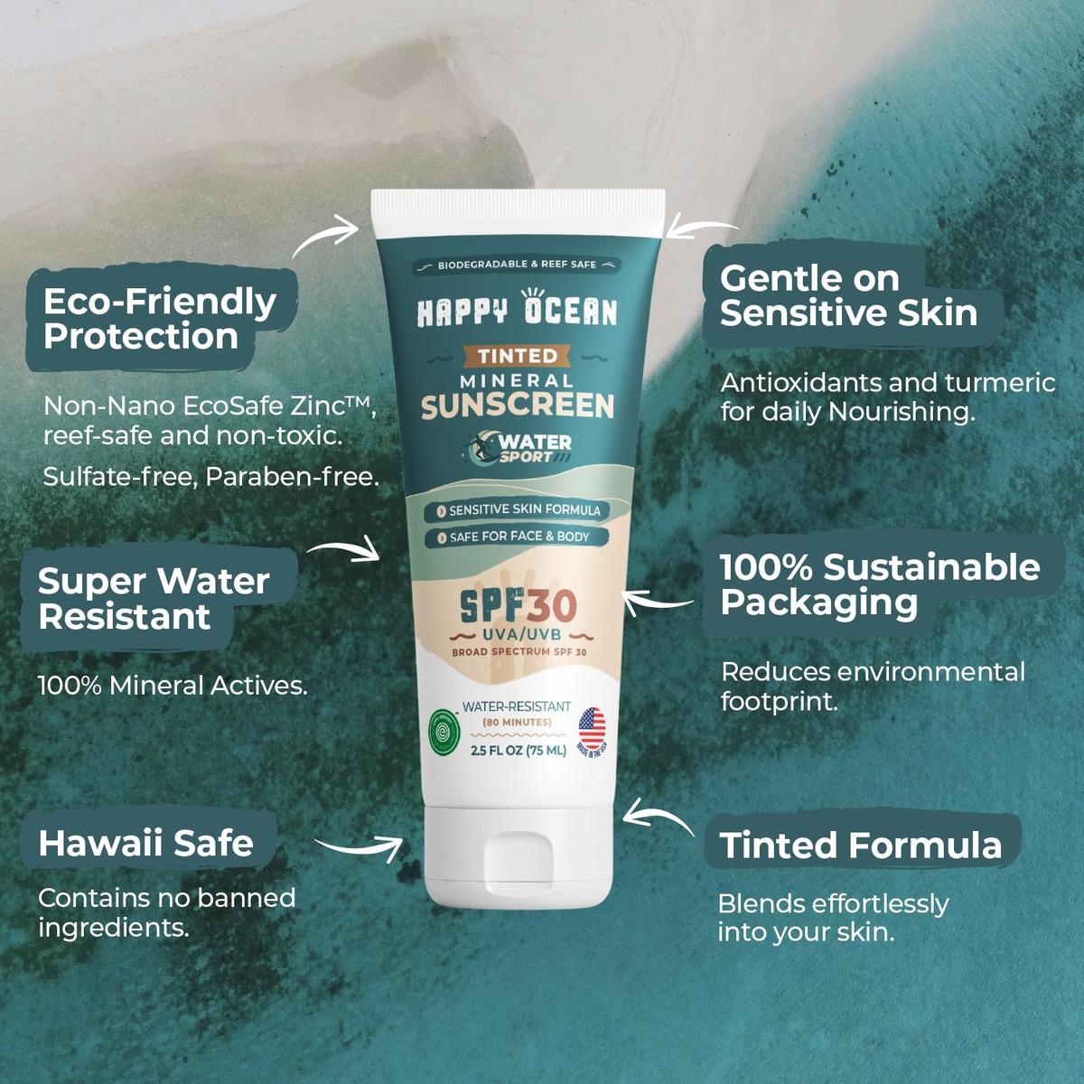 Protetor solar mineral colorido biodegradável SPF 30 para rosto e corpo, protetor solar esportivo seguro para recifes, tamanho de viagem, orgânico não tóxico, à base de minerais naturais, de 2,5 oz — PROTETOR SOLAR MINERAL COLORIDO DE ALTO DESEMPENHO PARA ROSTO: Este protetor solar colorido oferece proteção UVA/UVB de amplo espectro com uma tonalidade natural que se mistura perfeitamente, ideal para uso facial e corporal. – Protetor solar colorido resistente à água para corpo e rosto: Projetado para entusiastas da água, esse protetor solar mineral permanece eficaz por até 80 minutos, perfeito para nadar, mergulhar com snorkel e atividades ao ar livre. – Não oleoso PROTETOR SOLAR MINERAL COLORIDO PARA ROSTO: Nossa fórmula leve e não tóxica garante um acabamento suave e não oleoso, tornando-o um protetor solar colorido diário ideal para rosto, mesmo para peles sensíveis ou propensas a acne. – PROTETOR SOLAR COLORIDO SEGURO PARA RECIFES E ECOLÓGICO: proteja sua pele e o meio ambiente com nosso protetor solar colorido seguro para recifes, embalado em resina de cana-de-açúcar ecologicamente correta, adequado para uso diário. – Calmante SPF PROTEGIDO PARA ROSTO E CORPO: evita queimaduras solares e irritações, mantendo a pele hidratada e saudável, tornando-o o melhor protetor solar facial colorido para uso diário e aventuras ao ar livre.