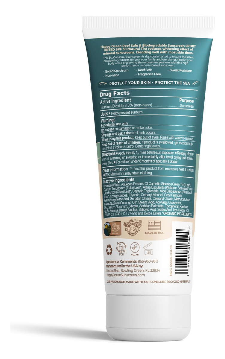 Protetor Solar Happy Ocean Spf 30 Tinted Mineral 75ml Biodeg