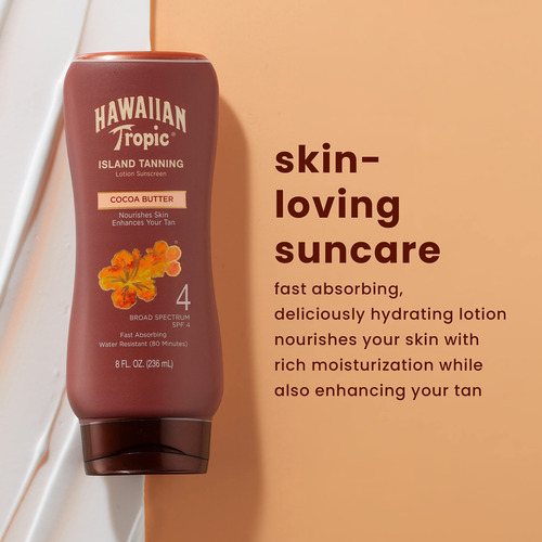 Protetor solar Hawaiian Tropic, protetor solar bronzeador escuro, manteiga de cacau FPS 4, 8 onças