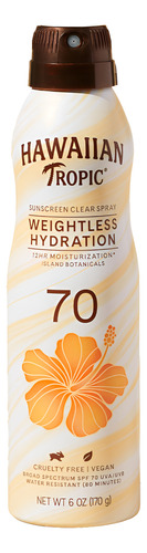 Protetor solar Hawaiian Tropic Weightless Hydration Clear Spray SPF 70, 6 onças Protetor solar Hawaiian Tropic SPF 70, protetor solar, protetor solar sem oxibenzona, protetor solar corporal, 6 onças